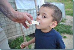 La stana Share Written By Mihaela Zaharia Tags 2010-08-26 Într-una din zilele în care am stat la Suceava, am dat o fugă împreună cu bunicul și până la o stână din apropiere să vedem mulsul oilor. Copiii au fost încântati: Deși au văzut și multe alte animale: Chiar și păuni: Dar mai presus de toate, în special pentru Robert a fost că s-a urcat în tractor, care mai era și roșu, ca cel din desenele lui preferate, Kleiner Roter Traktor: Bineînțeles că au mâncat și brănză proaspătă, adică a mâncat Robert, că Ioana nu se atinge de așa ceva: Și ai văzut oile cum vin la muls: Au văzut mulsul oilor (și eu, pentru prima dată!): Robert a băut lapte proaspăt muls: Am gustat și eu și chiar era bun, era ca o spumă de capuccino. Ioana nu a fost interesată, ca de obicei. În concluzie, am avut o seară frumoasă la stână cu experiențe și amintiri unice și pentru ei și pentru mine: Poate mai mergem și vara viitoare. Poate mergeți și voi …